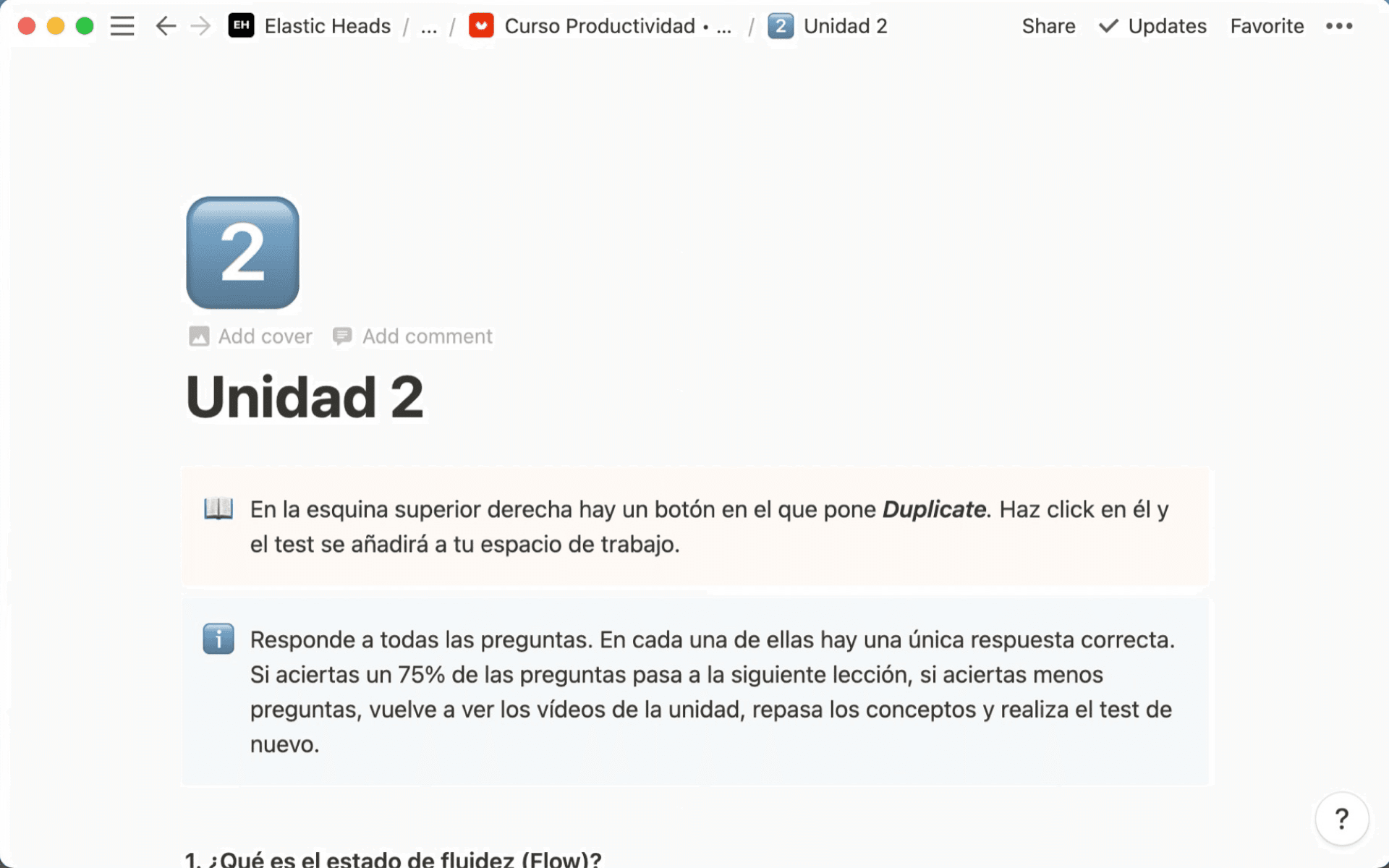 When Domestika — the Skillshare of Spain — asked me to create a course about productivity, I used Notion to craft a dynamic experience that has been enjoyed by nearly 10,000 students, with a 98% satisfaction rating. Not only did Notion provide a platform for participants to develop personalized productivity systems, but it also allowed me to bundle templates, quizzes and other extended resources.